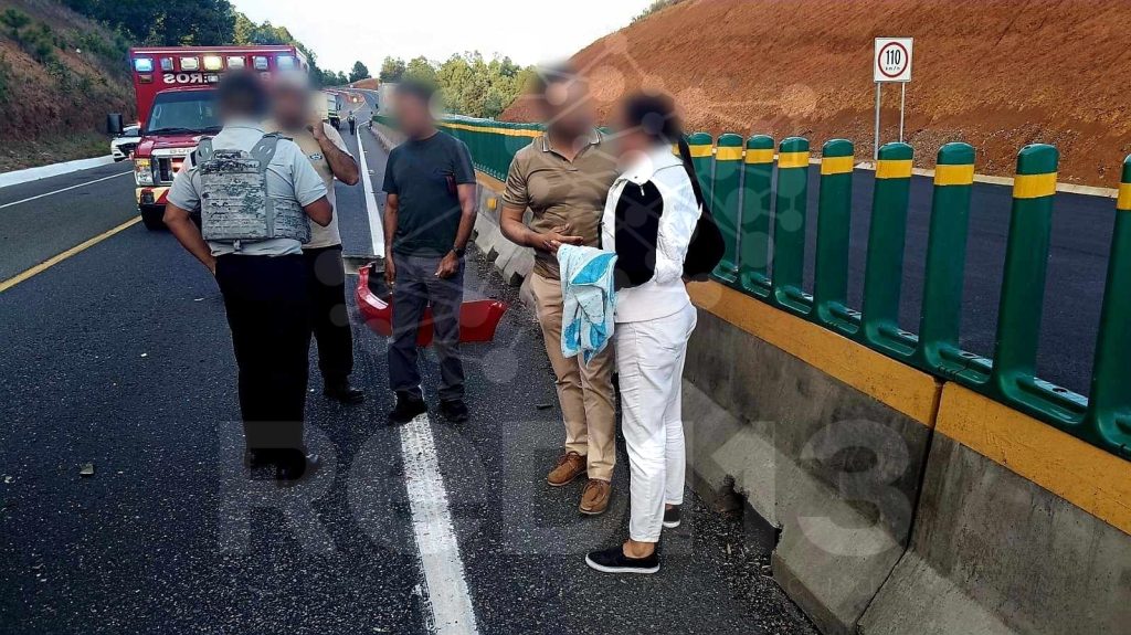 El accidente fue reportado en el kilómetro 72+400, del tramo carretero Pátzcuaro – Uruapan, donde quedó con daños en el frente y ambos costados, un vehículo Jetta de color rojo, con matrícula 7PLN-333-B.