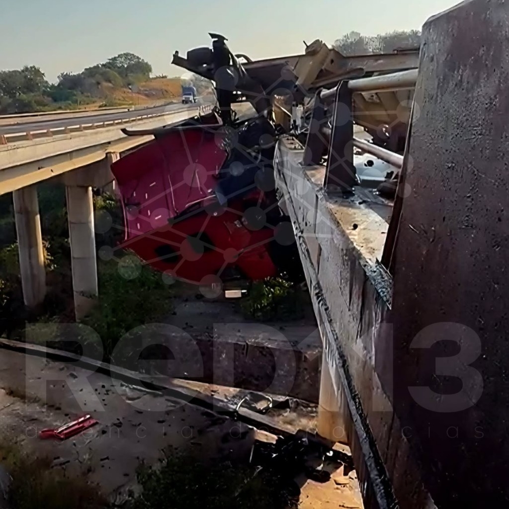El camión impactó contra la barrera metálica de contención del lado izquierdo de la vialidad. Tras el choque, la cabina se proyectó hacia un desnivel ubicado sobre un puente y cayó varios metros hasta el suelo.