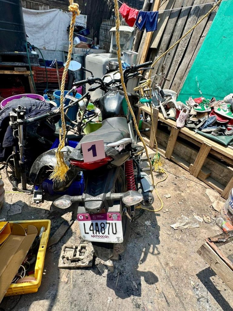En atención a dicho mandato, Policía de Investigación de la Unidad Contra Robo de Vehículos, adscrita a la Fiscalía Especializada en Atención a Delitos de Alto Impacto, se apersonó en el sitio, donde localizaron una unidad de la marca Honda, así como una placa de circulación que cuenta con reporte de robo y un cuadro de una motocicleta totalmente desvalijada; asimismo, se localizó herramienta utilizada para remarcar superficies.