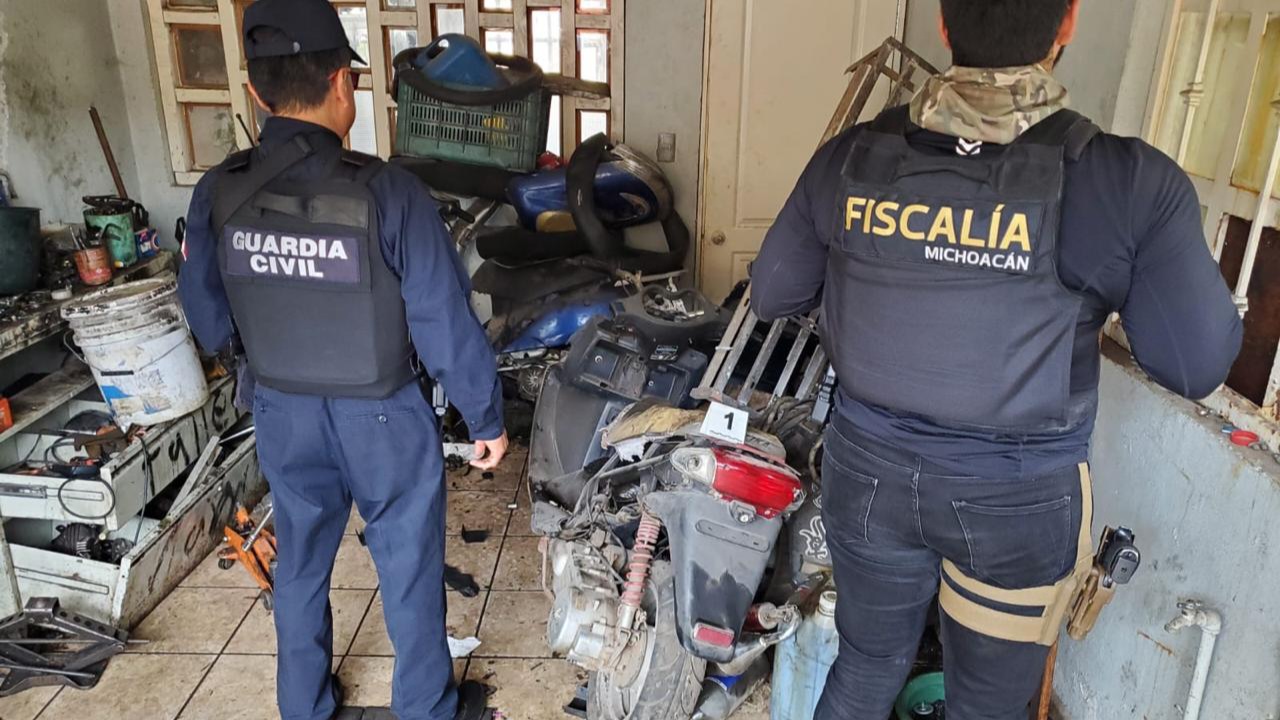 Morelia, Michoacán, a 28 de mayo de 2025.- La Fiscalía General del Estado de Michoacán (FGE) ejecutó un cateo en un taller de motocicletas ubicado en el municipio de Morelia, el cual resultó en el aseguramiento de una motocicleta con reporte de robo y alteraciones en sus medios de identificación.