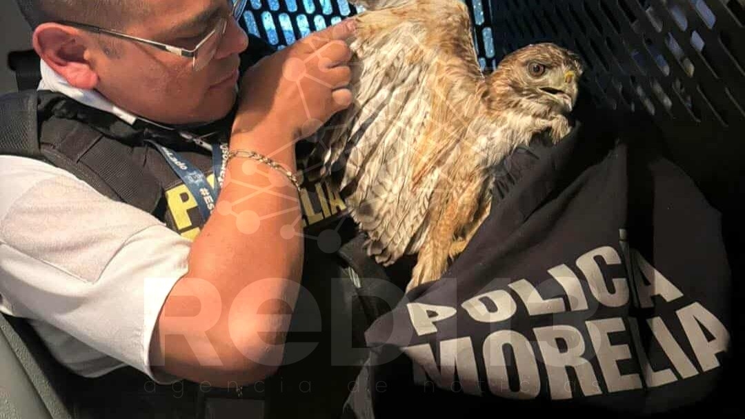 Morelia, Michoacán, 24 de junio de 2025.- Un halcón cola roja, especie protegida y endémica de México, fue localizada debilitada y desnutrida posada sobre una piedra a la orilla del camino que conduce a la colonia de San José Itzícuaro, perteneciente a la ciudad de Morelia, informaron fuentes policiales.