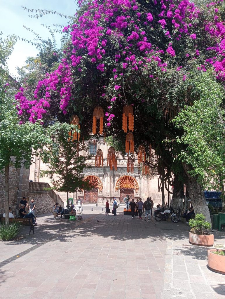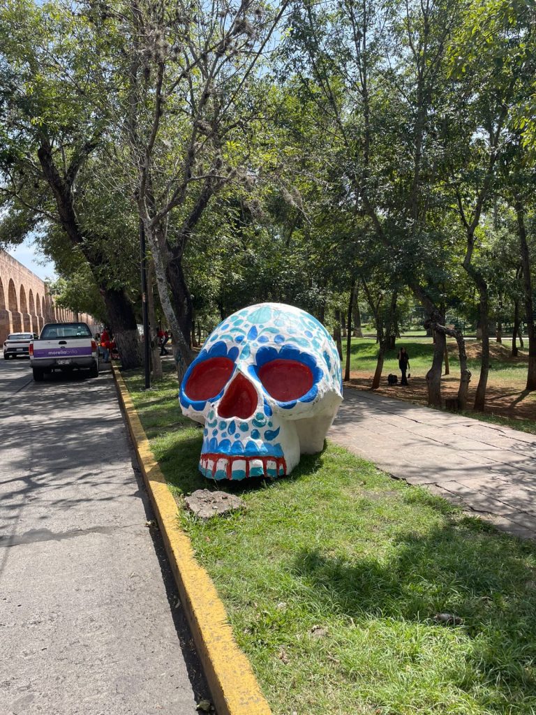 La secretaria de Turismo, Thelma Aquique Arrieta, informó que en el Centro Histórico de Morelia ya se pueden disfrutar de exhibiciones y decoraciones propias de la temporada. Espacios como la calle peatonal El Nigromante, la plaza Natalio Vázquez Pallares, el Bosque Cuauhtémoc, la Calzada Fray Antonio de San Miguel, la Cerrada de San Agustín, la Plaza Valladolid, y el Palacio Municipal, se convierten en vistosos escenarios de color con catrinas, catrines y cráneos gigantes, que rinden homenaje a nuestras raíces.