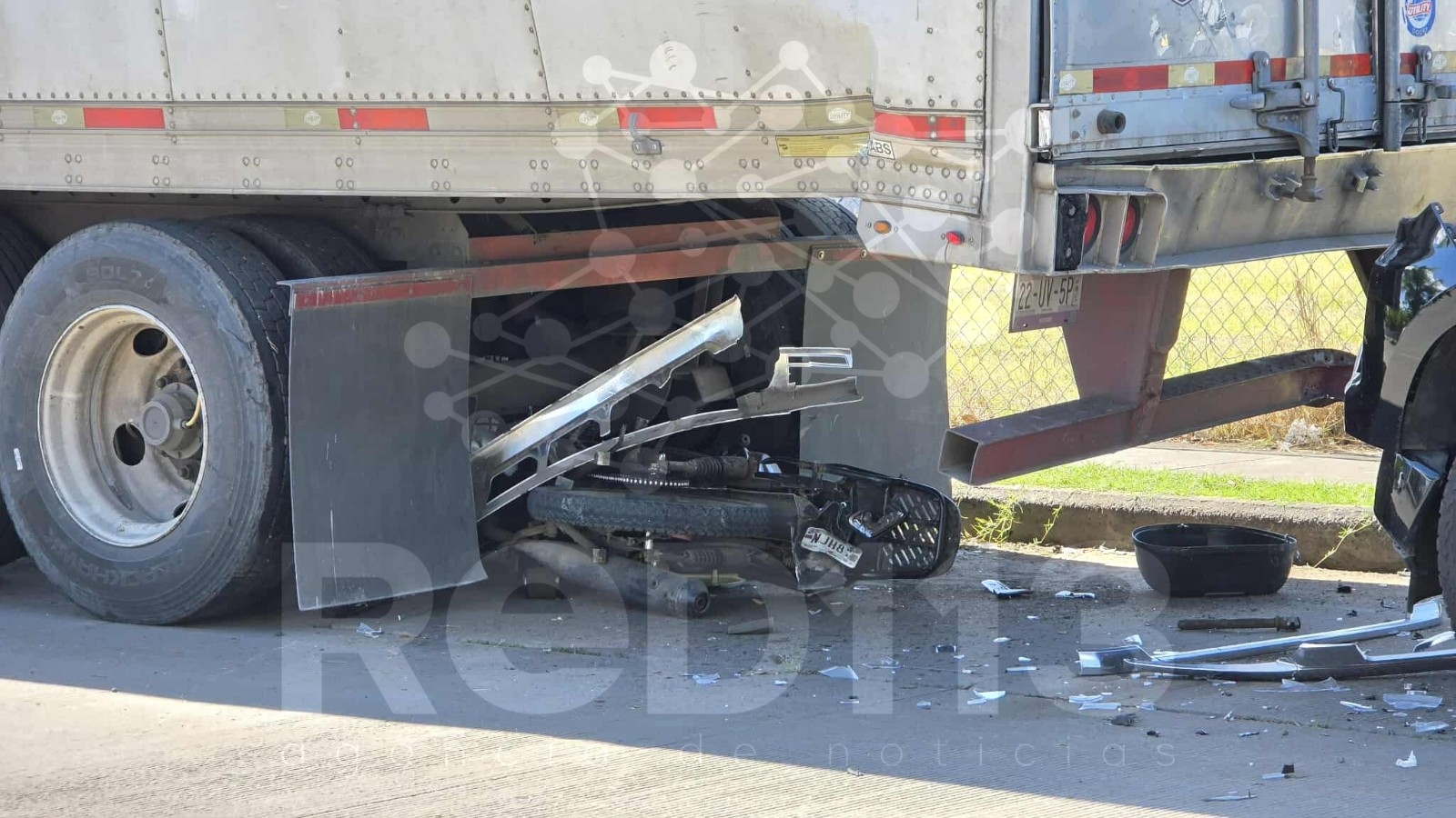 Las unidades involucradas son, una camioneta Chevrolet Cheyenne, de color negro, con placas NR-2540-C, cuyo conductor se dio a la fuga, así como una motocicleta Italika DT125 color plata, con matrícula NJH8Y, la cual termino debajo de un tráiler color blanco, con placas 22-UV-5P del Servicio Público Federal, el cual estaba estacionado.
