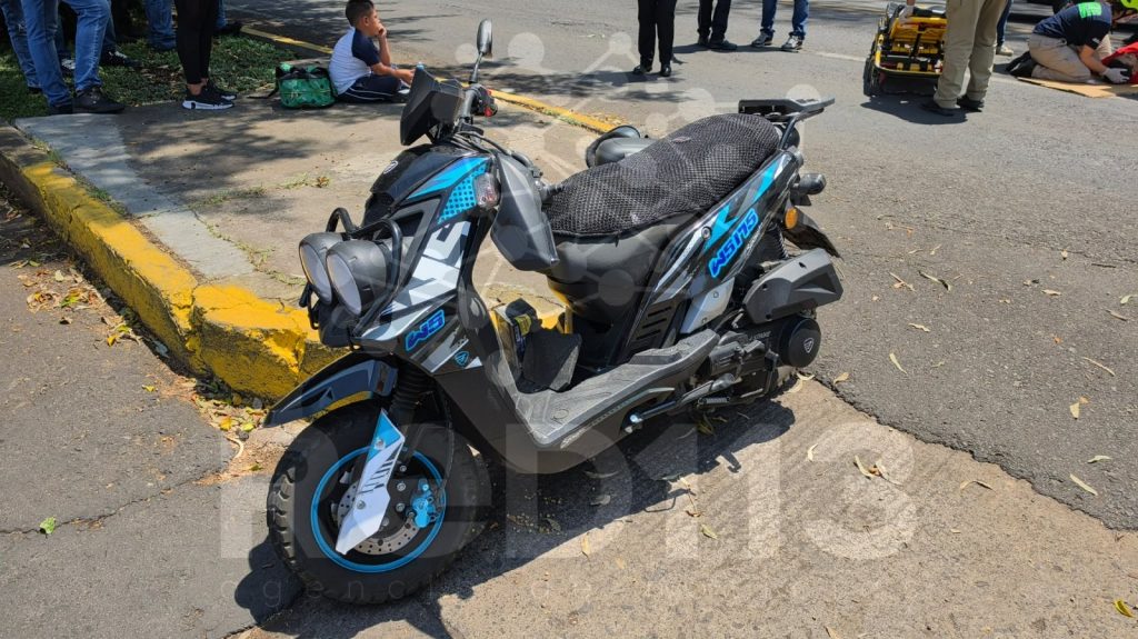 Oficiales de Tránsito Municipal realizaron los peritajes y aseguraron la moto de la marca Italika WS175, de color negro, con azul, con placa L2F17V, así como la camioneta involucrada, una Honda CR-V, de color plata, con matrícula PLL-453-B.