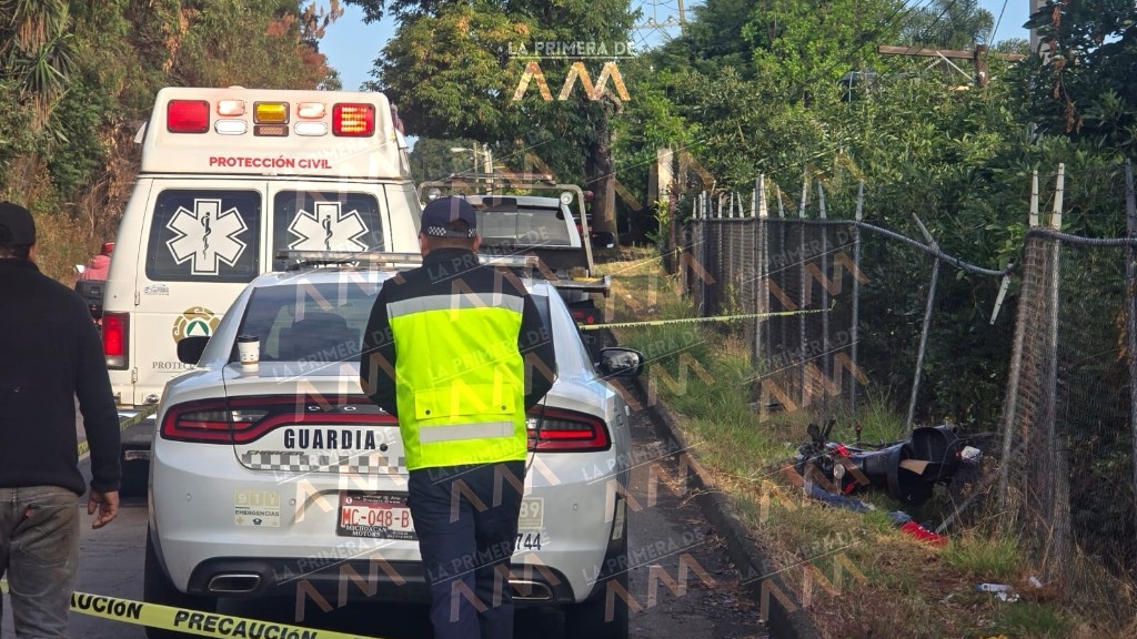 Tacámbaro, Michoacán, 21 de abril de 2026. — Un motociclista perdió la vida la mañana de este martes luego de sufrir un aparatoso accidente sobre la carretera Tacámbaro–Viña, donde terminó impactándose contra una malla ciclónica y posteriormente contra el pavimento.