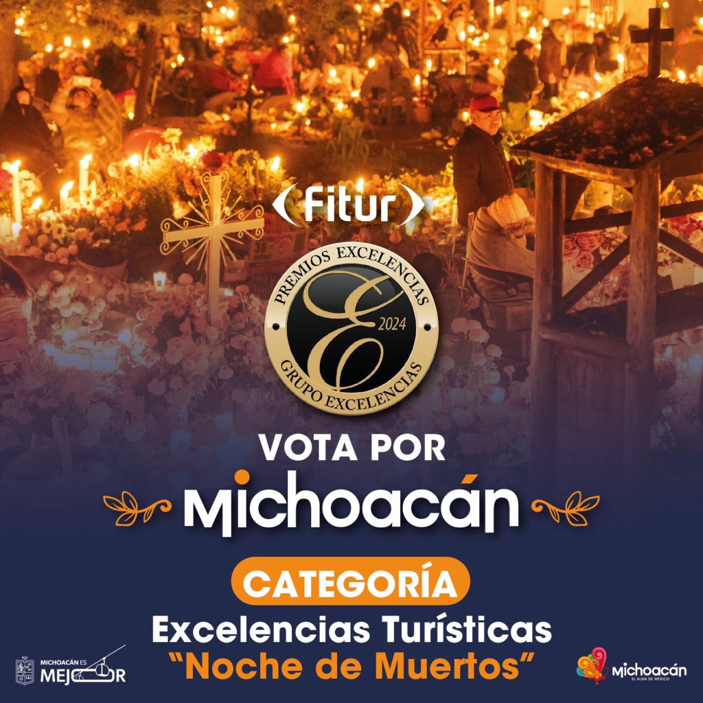 Morelia, Michoacán, 11 de enero de 2025.- La celebración de Noche de Muertos de Michoacán está nominada a los Premios Excelencias, que se entregarán en la Feria Internacional de Turismo de España, del 22 al 26 de enero.