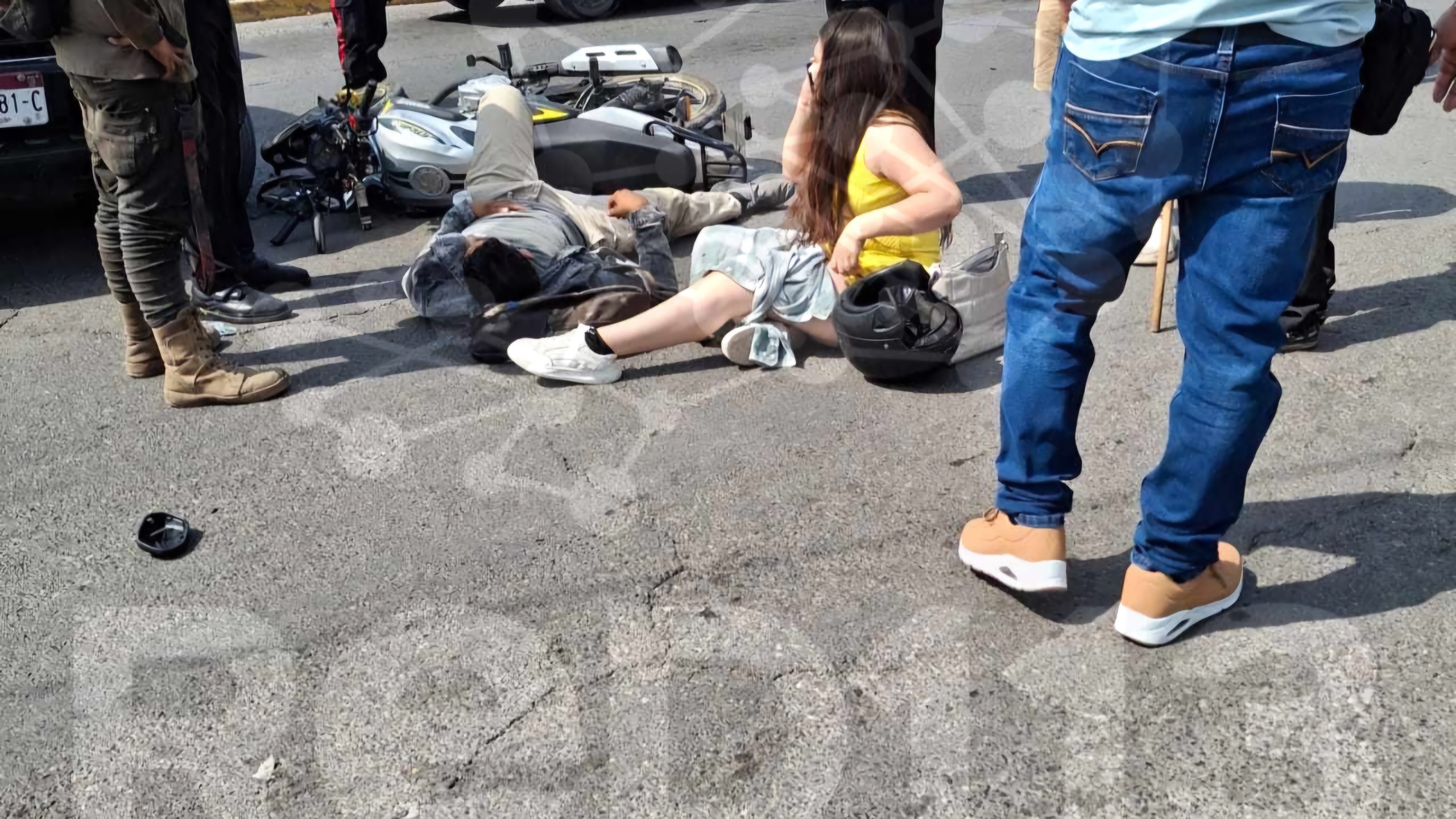 Apatzingán, Michoacán, 19 de marzo de 2025.- Una pareja resultó con heridas leves tras ser atropellada por una camioneta de la Arquidiócesis de Apatzingán.