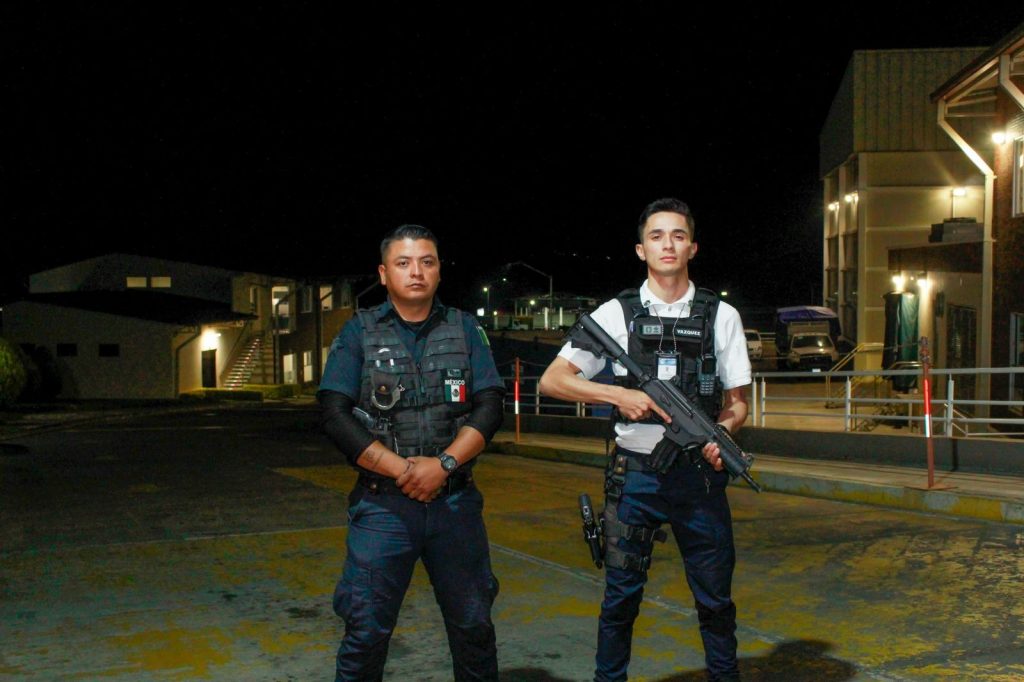 Uruapan, Michoacán, 29 de enero de 2025.- La Policía Auxiliar del Estado de Michoacán brinda servicio de seguridad nocturno a empresas empacadoras de aguacate, como resultado de los trabajos coordinados entre la Embajada de Estados Unidos en México y la Asociación de Productores y Empacadores Exportadores de Aguacate (APEAM) para salvaguardar uno de los sectores más importantes para la economía local.