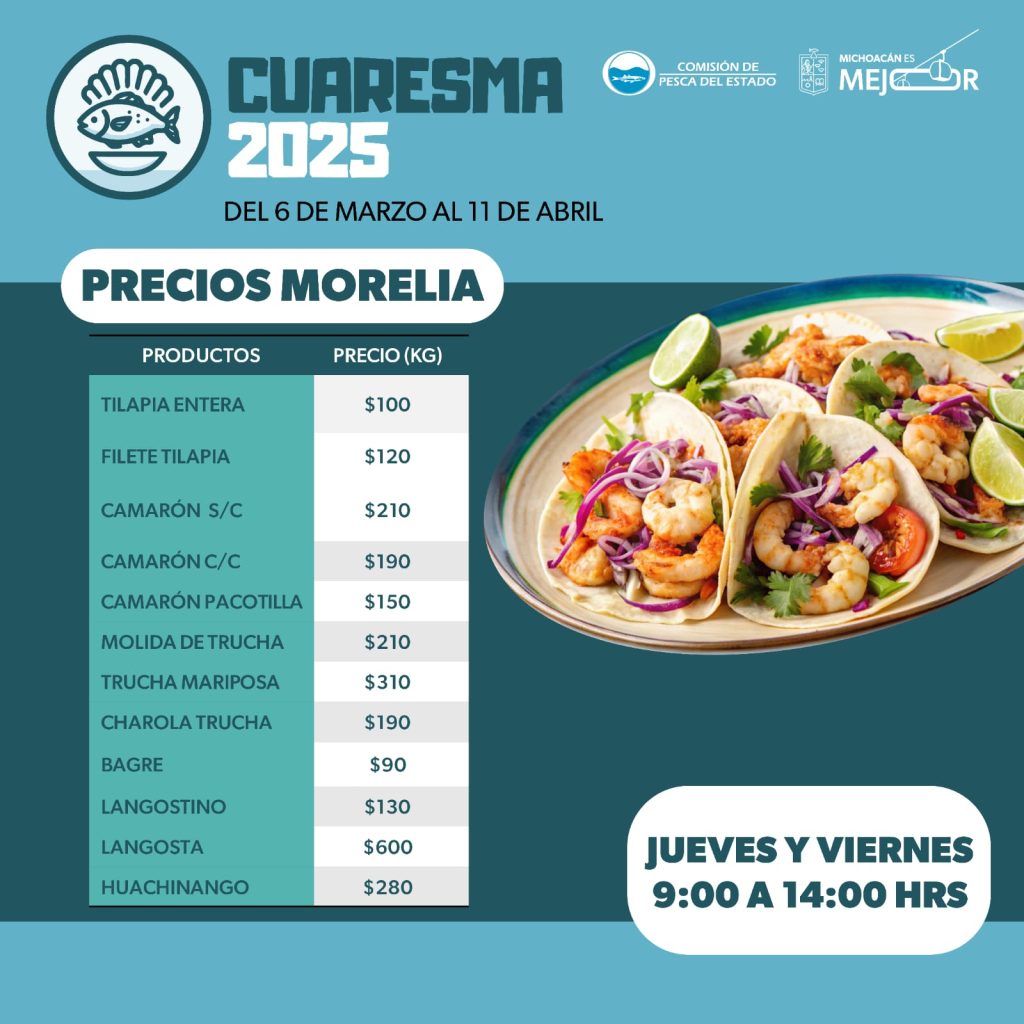 Detalló que se instalarán puntos de venta en los municipios de Venustiano Carranza, Puruándiro, Zitácuaro, Parácuaro, Uruapan, Tzintzuntzan, Tacámbaro y Apatzingán, los cuales operarán todos los días viernes durante la temporada de Cuaresma.
