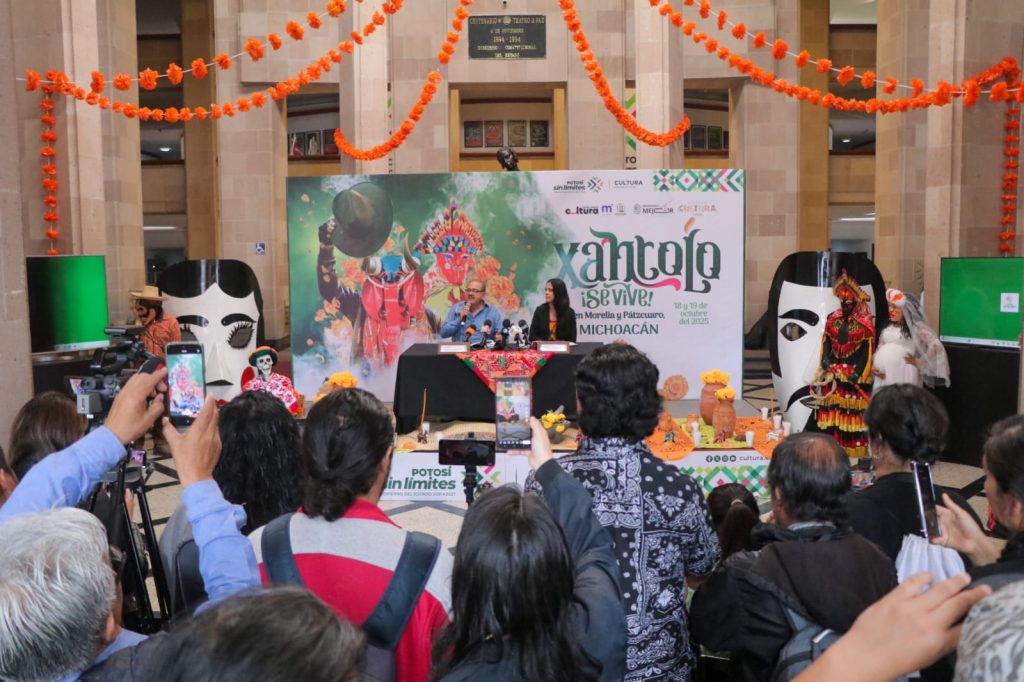 San Luis Potosí, San Luis Potosí, 18 de septiembre de 2025.- La Secretaría de Cultura de Michoacán (Secum), en colaboración con la Secretaría de Cultura de San Luis Potosí (Secult), anunció la llegada del Xantolo al estado, una festividad tradicional de la Huasteca Potosina donde se honra a los muertos con danzas, música y ofrendas, la cual se exhibirá por primera vez en la entidad.