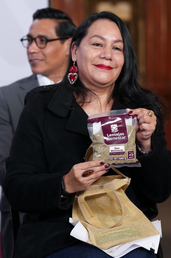 Agregó que, a partir de hoy 10 de diciembre se recogen las primeras 30 toneladas de lentejas para su distribución en las Tiendas Bienestar y a finales de enero su reparto se hará con envase Bienestar para que llegue a diferentes partes de México.