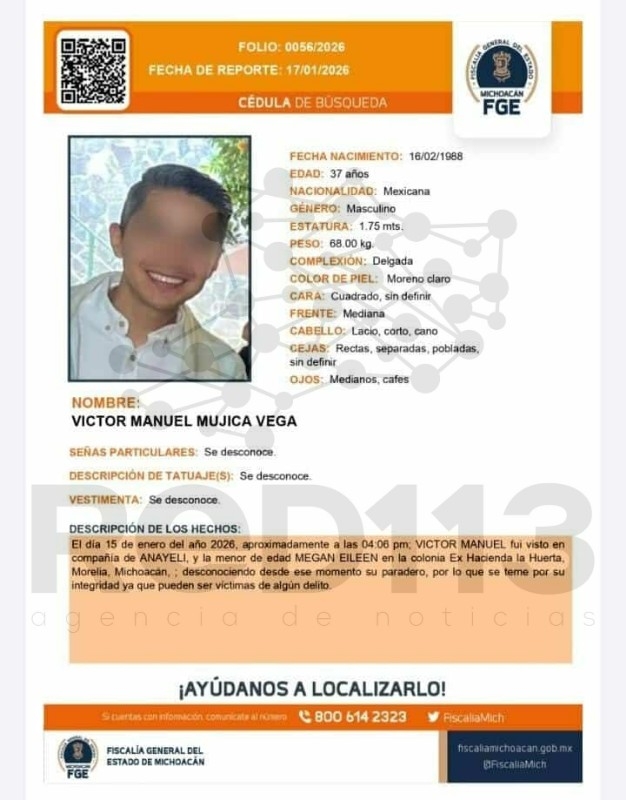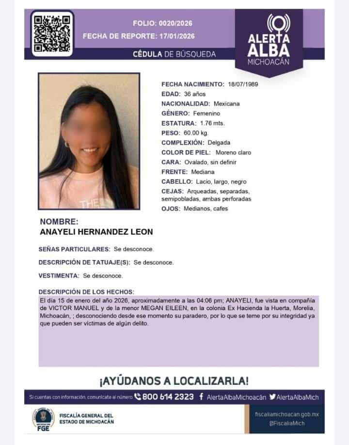 Morelia, Michoacán, 24 de enero de 2026.- Alfredo M., de 47 años de edad, presunto asesino de los intérpretes de Lengua de Señas Mexicana (LSM), identificados como Víctor Manuel M., y Anayeli H., de 36 y 37 años, respectivamente, así como de la hija de ambos, Megan Eileen , de 12 años, resultó ser pariente de las víctimas, informaron fuentes allegadas a las autoridades policiales.