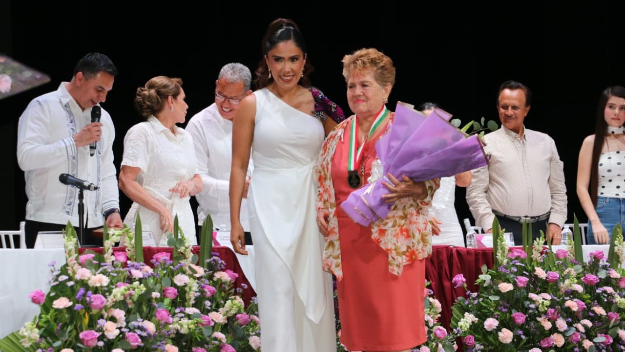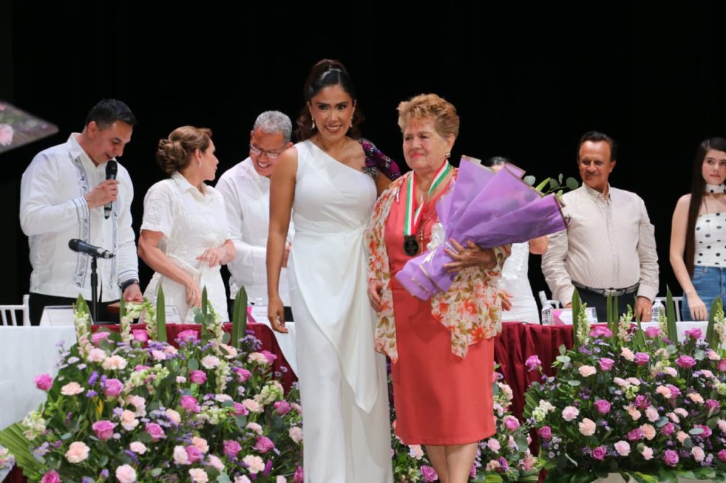 *La presidenta municipal, Fanny Arreola Pichardo, entregó la condecoración a la destacada profesora