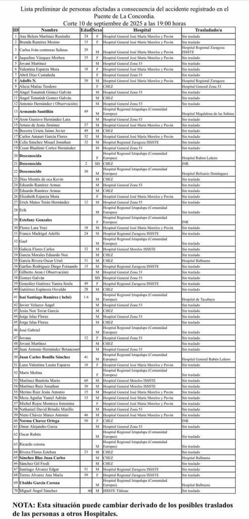 Iztapalapa, Ciudad de México (CDMX).- Miércoles 10 de septiembre de 2025.-Tres fallecidos y 70 heridos, el saldo preliminar que dejó la explosión de una pipa de gas LP en la Calzada Ignacio Zaragoza, a la altura del Puente de la Concordia, en la delegación Iztapalapa, informó Clara Brugada, jefa de gobierno de la Ciudad de México (CDMX), esto a través de su cuenta en X.