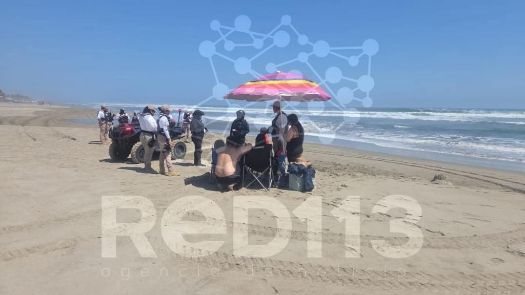 Lázaro Cárdenas, Michoacán, 10 de abril de 2026.- La inmediata reacción y coordinación de la policía turística de Lázaro Cárdenas, salvavidas y paramédicos de Protección Civil Municipal permitió salvaguardar la vida de una familia de turistas que fue arrastrada mar adentro.