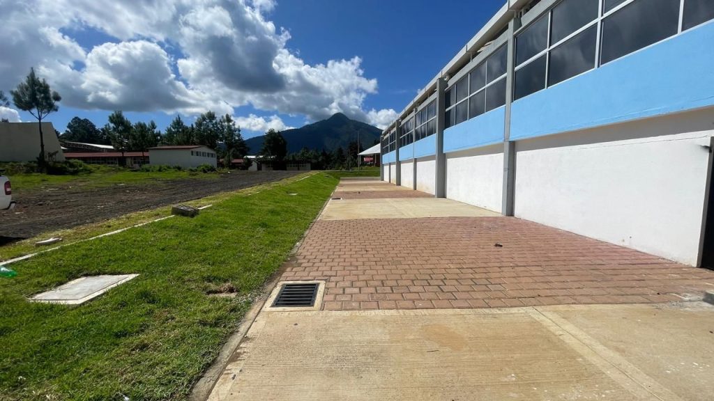 Asimismo, la Dirección de Infraestructura Educativa de la SCOP realizó trabajos de pintura general en las fachadas y canchas deportivas de la institución, así como la construcción de guarniciones y cunetas.