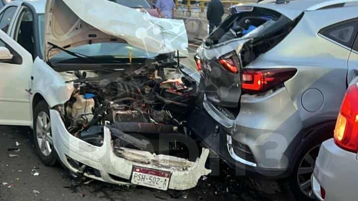 Morelia, Mich.- Lunes 25 de agosto de 2025.- Al menos cuatro automotores protagonizaron un aparatoso choque sobre un puente de la avenida Francisco I. Madero Poniente de Morelia, hecho que dejó dos heridos leves, daños materiales y bastante carga vehicular, indicaron fuentes allegadas al tema.