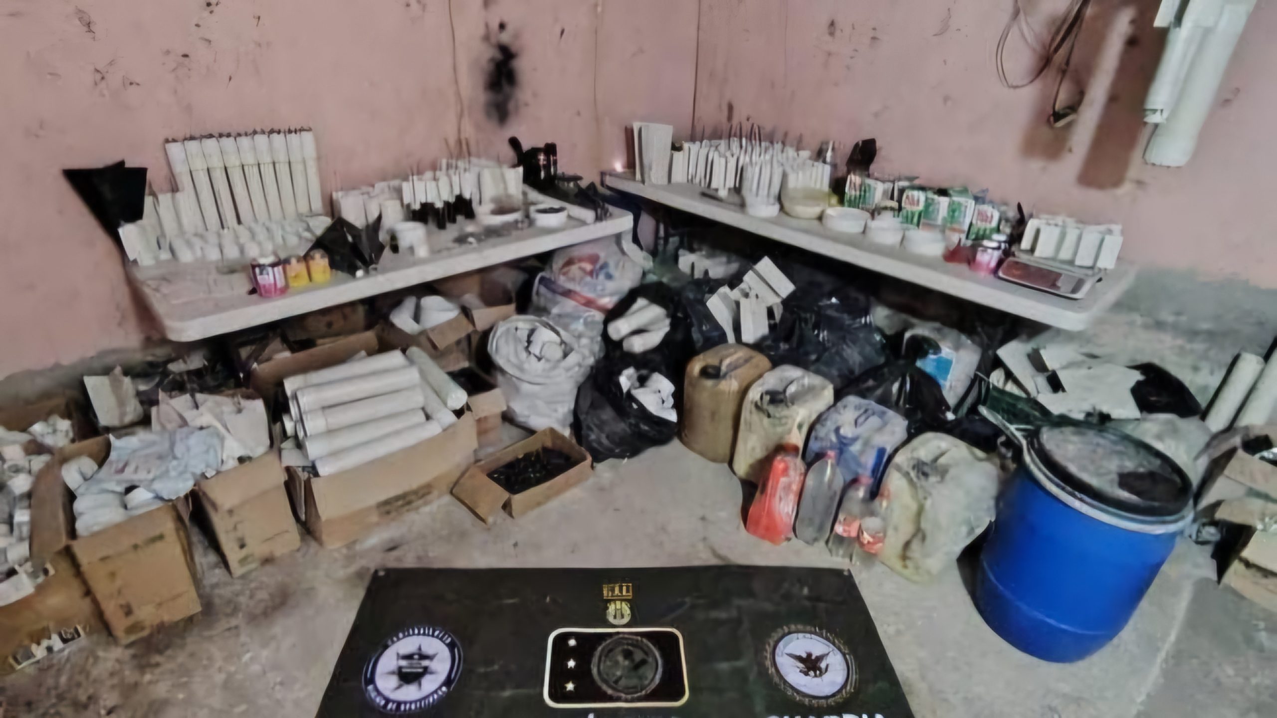 Apatzingán, Michoacán, 11 de mayo del 2025.- En una acción interinstitucional, agentes de las secretarías de Seguridad Pública (SSP), de la Defensa Nacional (Defensa) y de la Fiscalía General del Estado (FGE), cumplimentaron una orden de cateo en la localidad de Cenobio Moreno, municipio de Apatzingán, donde desarticularon una bodega utilizada para la elaboración de explosivos.