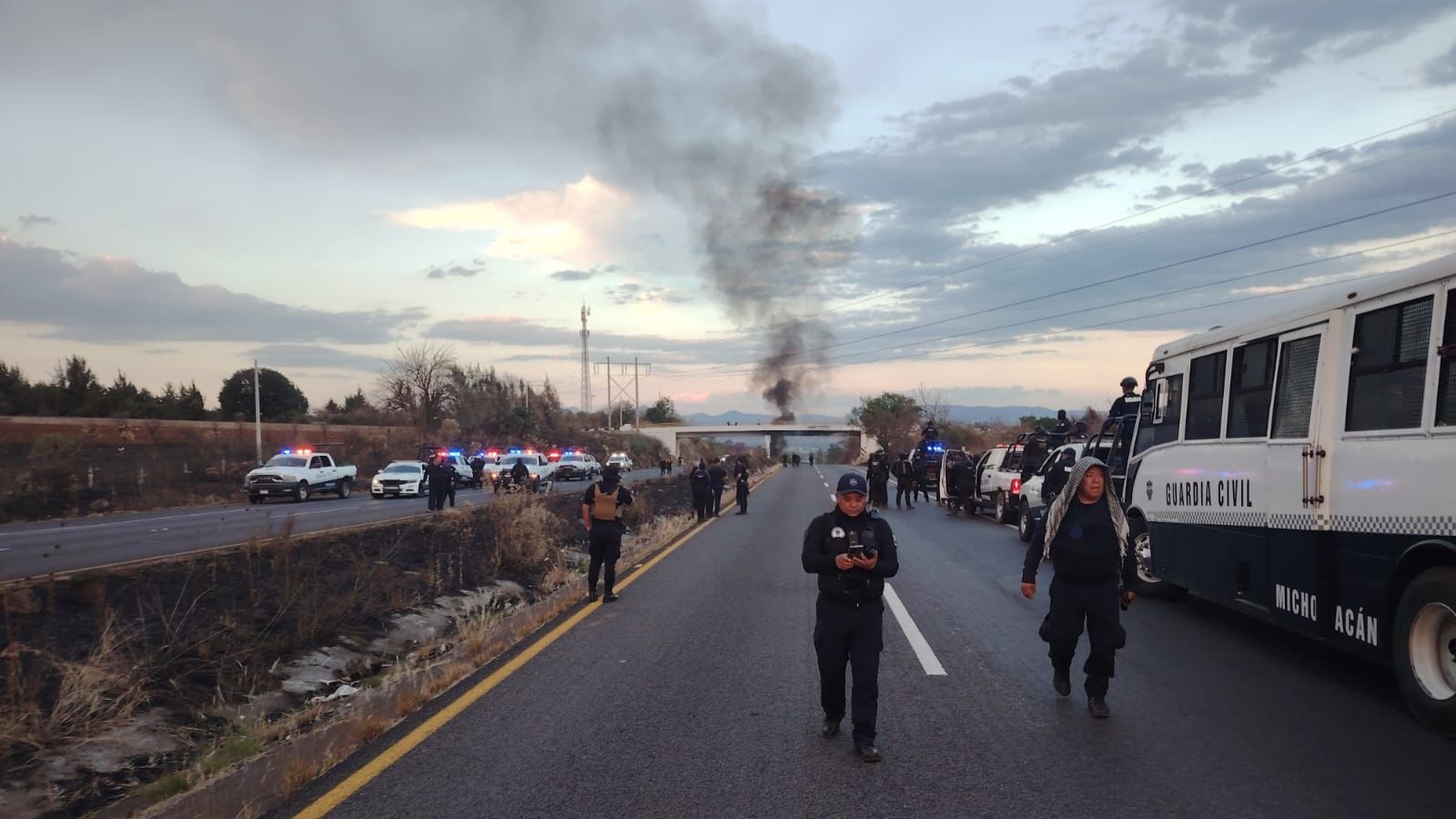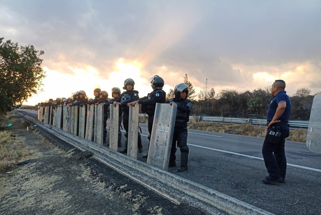 Con la encomienda de salvaguardar el bienestar y el patrimonio de la población, los agentes de la Guardia Civil se desplegaron al kilómetro 24 a la altura de Tiripetío de la citada vía, donde manifestantes cerraron el paso a la circulación en ambos sentidos.