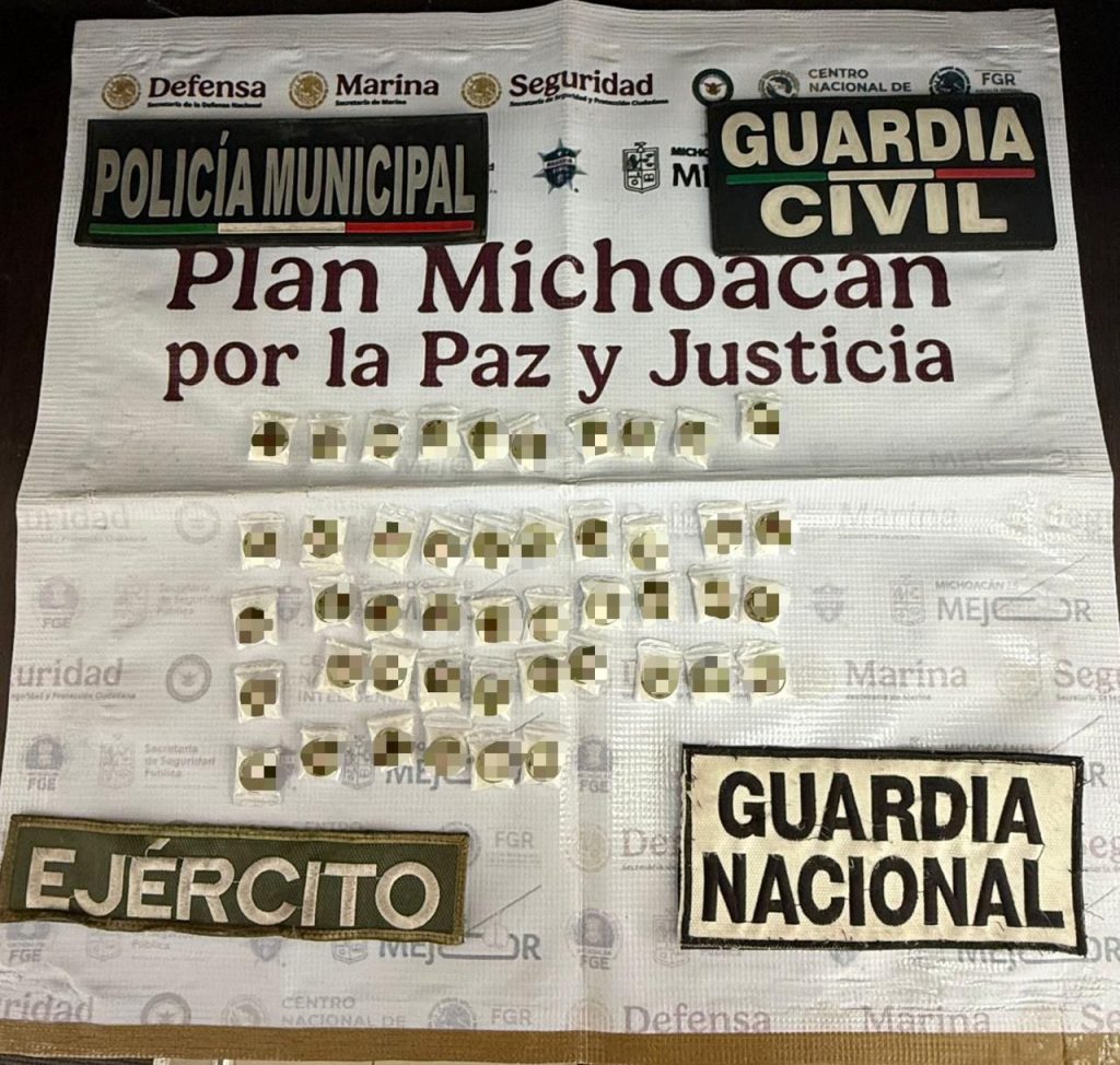 Durante una acción operativa interinstitucional en la colonia El Sabinito, en Zamora, elementos de la Guardia Civil, Defensa, Guardia Nacional y Policía Municipal detuvieron a un hombre en posesión de 46 envoltorios de una sustancia con las características propias de la metanfetamina; asimismo, se le aseguró una motocicleta marca Italika.