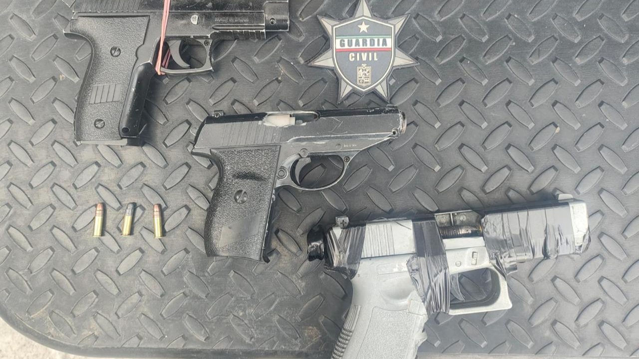 Al ahora detenido le fueron aseguradas tres armas de fuego tipo escuadra de fabricación casera, así como tres cartuchos útiles calibre .22 milímetros.