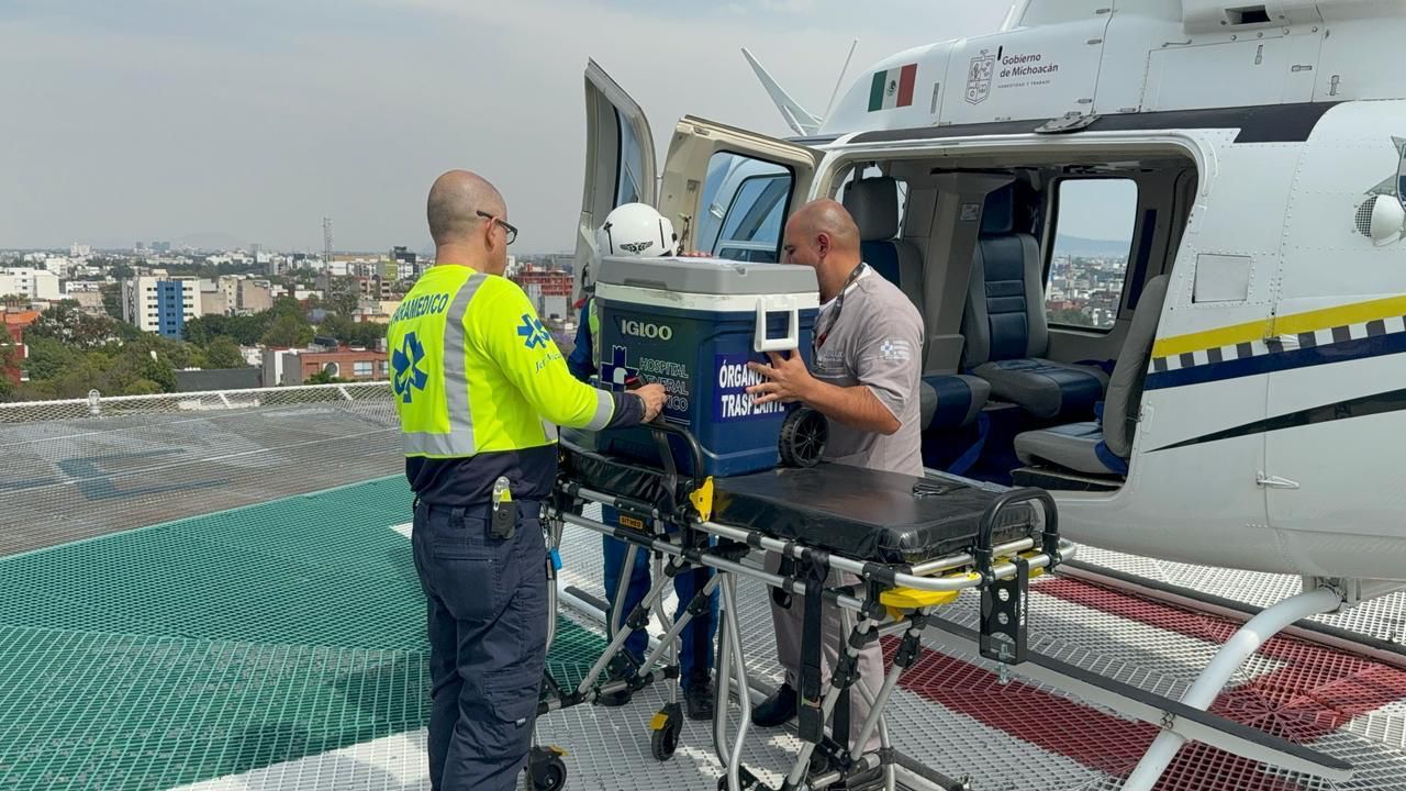 Morelia, Michoacán, de 31 de marzo del 2025.- Este lunes, a través de una de sus aeronaves, la Secretaría de Seguridad Pública (SSP) trasladó dos riñones y un hígado hacia dos centros médicos de la Ciudad de México para ser trasplantados.