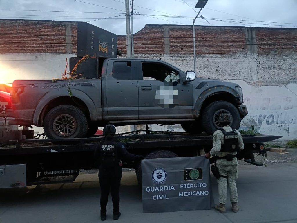 Asimismo, fueron localizados 10 chalecos balísticos y dos camionetas de la marca Ford con leyendas alusivas a una célula delincuencial. Todo lo asegurado fue presentado ante la autoridad correspondiente a fin de llevar a cabo las diligencias pertinentes.