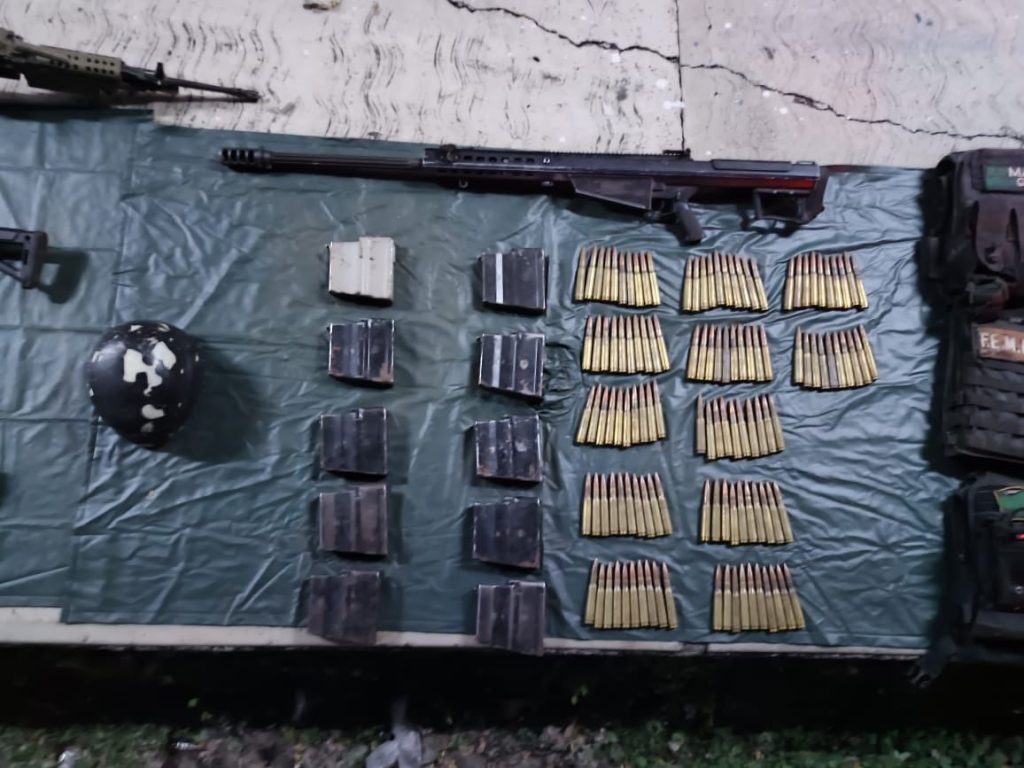 Luego de efectuar un perímetro de seguridad en la zona, los uniformados aseguraron un barret calibre .50 milímetros, dos ametralladoras, cuatro fusiles y un aditamento lanzagranadas, así como seis granadas calibre .40 milímetros, 3 mil 050 cartuchos útiles y 49 cargadores de diferentes calibres.