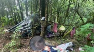 Apatzingán, Michoacán, 4 de agosto de 2025.- Producto de las labores de reforzamiento operativo implementado en el municipio de Apatzingán, los elementos de las secretarías de Seguridad Pública (SSP) y de la Defensa Nacional (Defensa), localizaron y desmantelaron un campamento usado por supuestos integrantes de un grupo delictivo, donde también se encontraron cuatro artefactos explosivos.
