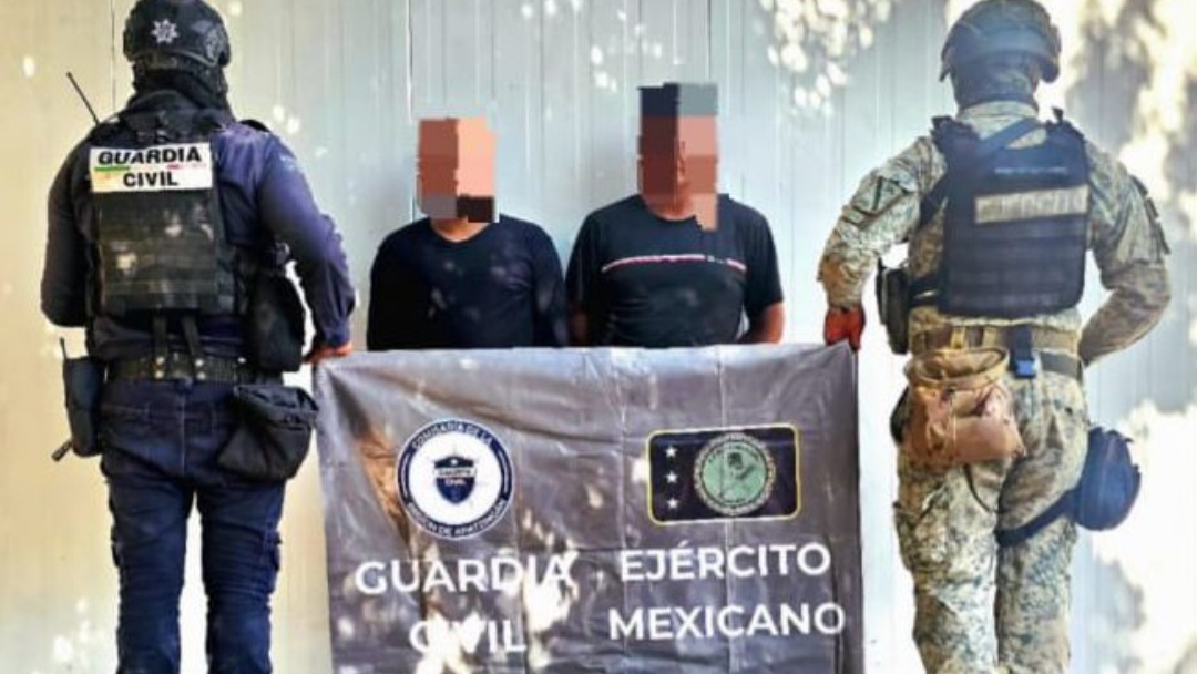 En la acción, fueron detenidos dos hombres en posesión de dos armas largas, 117 cartuchos útiles y cuatro cargadores, por lo que fueron puestos a disposición del Ministerio Público.