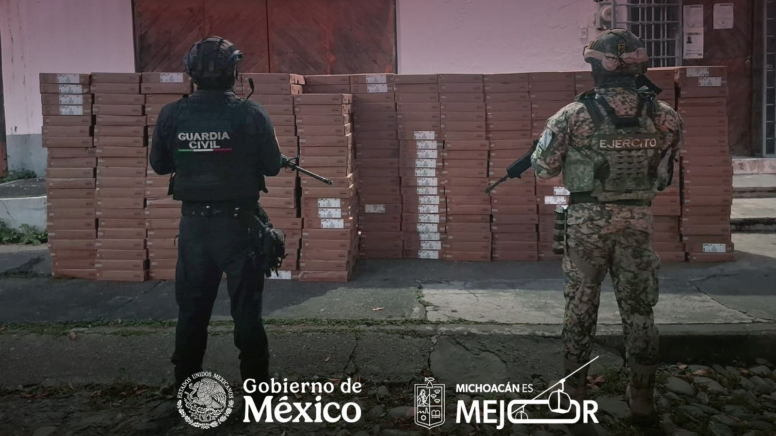 Arteaga, Michoacán, 12 de noviembre de 2025.- La Operación Paricutín permitió efectuar una labor interinstitucional coordinada entre las secretarías de Seguridad Pública (SSP) y de la Defensa Nacional (Defensa), en la cual se recuperaron 398 computadoras nuevas que habían sido robadas en el municipio de Arteaga.