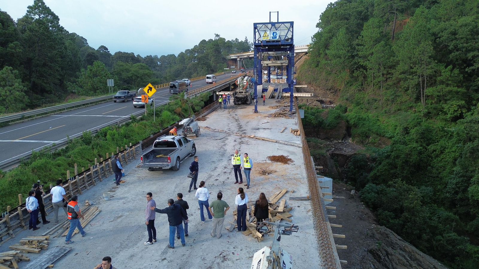 Por su parte, el residente de la obra, Antonio Ramírez, explicó al gobernador que actualmente se realizan trabajos con una máquina lanzadora de trabes, encargada de transportarlas y colocarlas en el puente, lo que optimiza los tiempos de desarrollo en este tipo de megaobras.