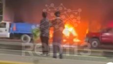 Incendio de taxi moviliza a cuerpos de emergencia en Apatzingán