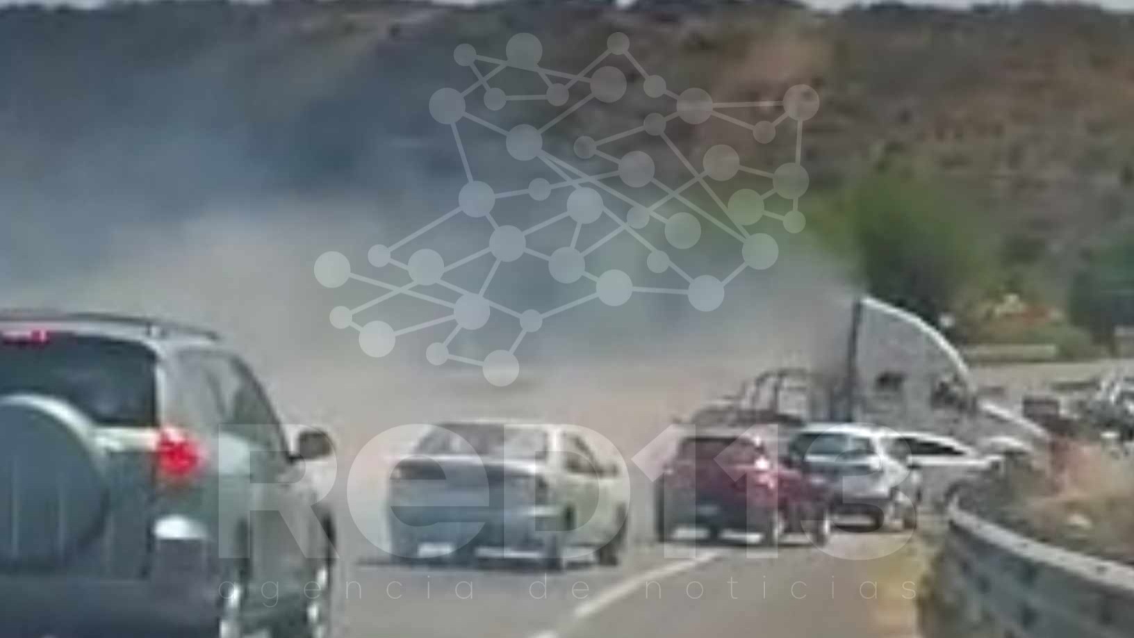 En determinado momento, un tráiler sin remolques circuló rápidamente por el carril de alta, chocó contra la patrulla, la cual fue proyectada contra otro carro y consecutivamente el tractocamión se impactó contra al menos otros dos coches.