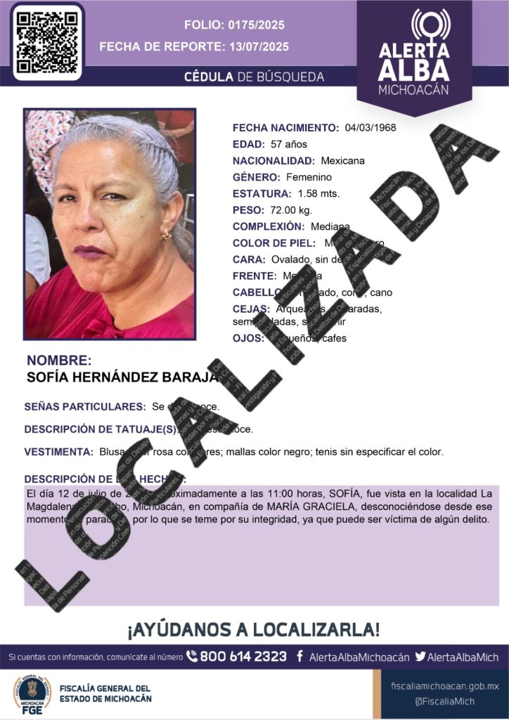 Tocumbo, Michoacán, a 16 de julio de 2025.- La Fiscalía General del Estado de Michoacán (FGE) informa que, esta mañana, dos mujeres -madre e hija-fueron liberadas tras haber sido privadas de la libertad el pasado 12 de julio, en el municipio de Tocumbo.