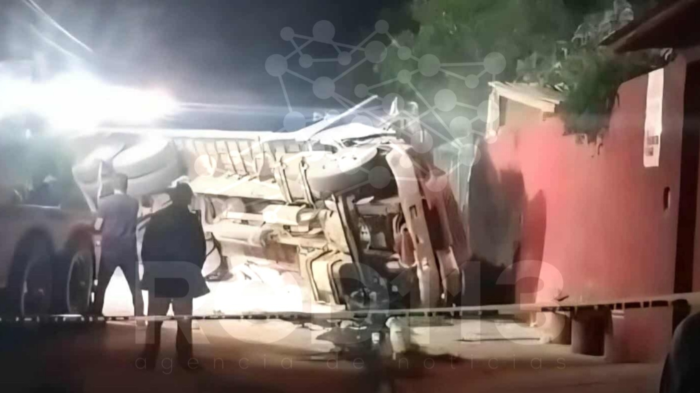 Salvador Escalante, Michoacán, 12 de agosto de 2025.- Los dos ocupantes de un tráiler que transportaba varios bultos de cemento fallecieron cuando dicha unidad volcó y se estrelló contra la barda de un domicilio en la comunidad de Ixtaro, municipio de Salvador Escalante, informaron autoridades policiales, las cuales agregaron que al referido vehículo presuntamente le fallaron los frenos.