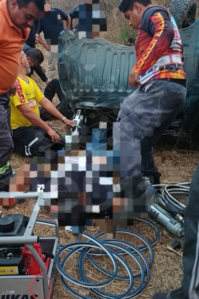 A su llegada los socorristas descendieron por terreno agreste y al fondo del desnivel hallaron una camioneta de color verde totalmente destrozada, aún en su interior localizaron a varios lesionados, por lo que con apoyo de equipo hidráulico realizaron las maniobras para su liberación.